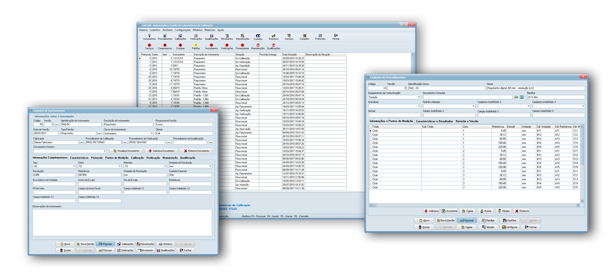 O Cali LAB é um software adequado à norma ISO/IEC 17025 que permite o controle total das atividades de um laboratório prestador de serviços e de uma indústria, desde o controle de orçamentos dos clientes, recepção e movimentação dos instrumentos, serviços realizados, tais como a execução das calibrações, verificações e manutenções, emissão de certificados e envio de resultados.